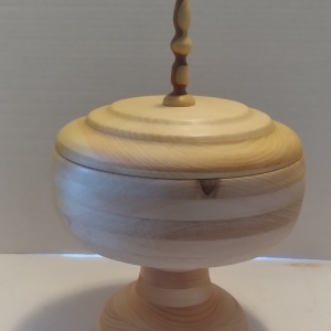 These pine candy bowls can be used for an assortment of things like chips..jewelry..wrapped candies..cookies..etc...these can be made in 2 sizes medium and large....medium is approx 7 in wide while the large is approx 11 in wide...they stand over 1 foot tall with finial included